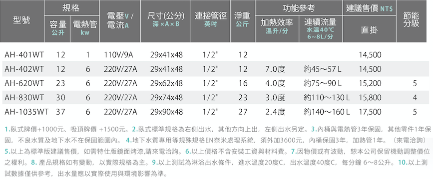 經濟部能源署本產品能源效率為第1級,貯備型電能熱水器AH-830W6| 功能 |