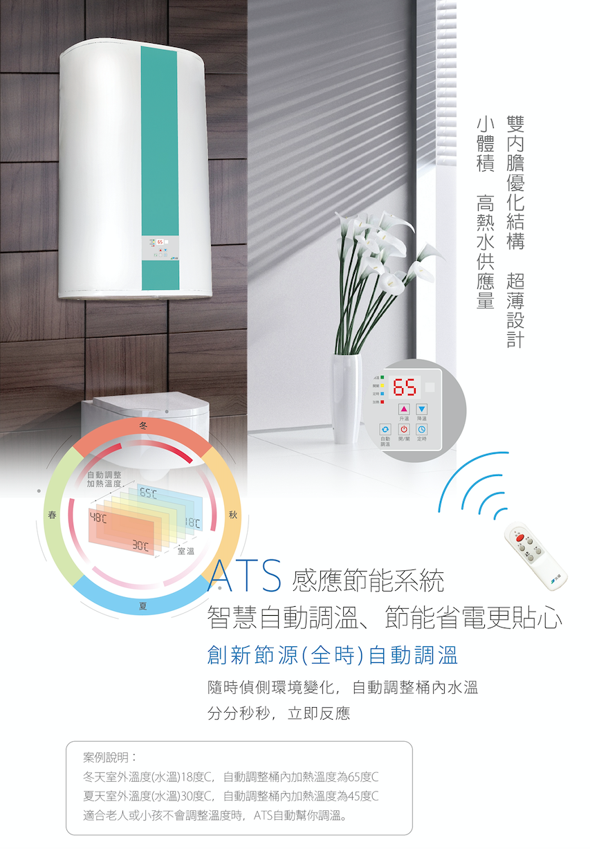 配備 新一代電子觸控面板,搭配 數位溫度顯示,溫度變化即時掌握;專利 ATS 自動調溫系統,使供水保持穩定舒適,也具備手動調溫與定時關機機能。